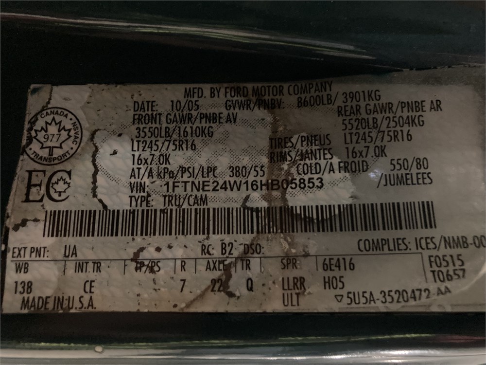 2006_FORD_E-250 _ FOURGONNETTE      ,Odomètre:53 983  km,Essence,Automatique,No série:1FTNE24W16HB05853,Masse (en kg):2244,Origine:Ville de Montréal (Matériel roulant)V MTL-179-06205,»» RÉPARATIONS  MAJEURES  À  FAIRE «« ,Rancart, vérification méc. Obligatoire    ,TVQ calculable sur:Prix de vente