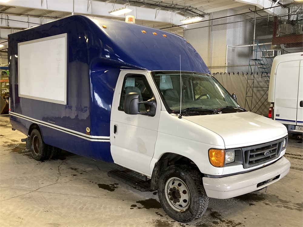 2006_FORD_E-450 _ CAMION ATELIER    6 ROUES, PNBV:6373KG  ,Odomètre:76 946  km,Essence,Automatique,No série:1FDXE45SX6HA71407,Masse (en kg):3990,Origine:Ville de Montréal (Matériel roulant)V MTL-237-06801,»» AUCUNE  INFORMATION  SUR l'ÉTAT DU VÉHICULE «« PERFORÉ PAR LA ROUILLE,Rancart, vérification méc. Obligatoire  Contrôle de vérification mécanique (CVM) requis :  ,TVQ calculable sur:Prix de vente