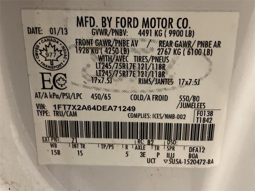 2013_FORD_F-250 XL _ CAMIONNETTE      ,Odomètre:101 449  km,Essence,Automatique,No série:1FT7X2A64DEA71249,Masse (en kg):3690,Origine:Centre Gestion Equipement Roulant CGER-13-7131,»» AUCUNE  INFORMATION  SUR l'ÉTAT DU VÉHICULE «« ,Véhicule remisé le  2026-03-30  ,TVQ calculable sur:8100
