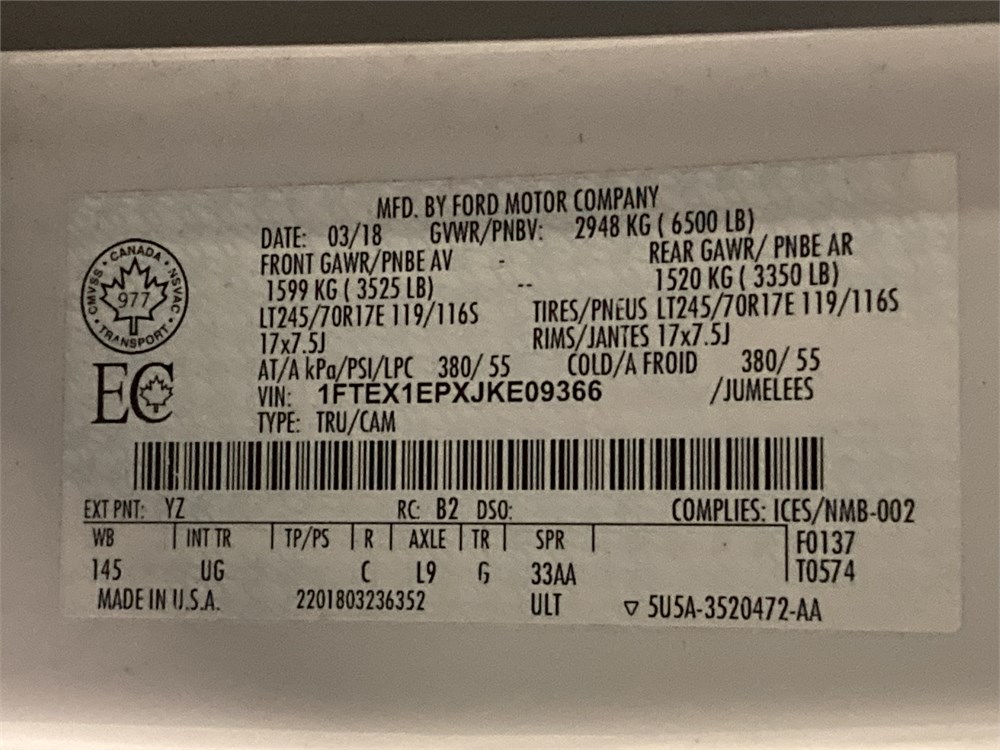 2018_FORD_F-150 XLT _ CAMIONNETTE  4 X 4    ,Odomètre:290 817  km,Essence,Automatique,No série:1FTEX1EPXJKE09366,Masse (en kg):2115,Origine:Centre Gestion Equipement Roulant CGER-18-7140,»» RÉPARATIONS  MAJEURES  À  FAIRE «« ,Véhicule remisé le  2026-03-30  ,TVQ calculable sur:18000
