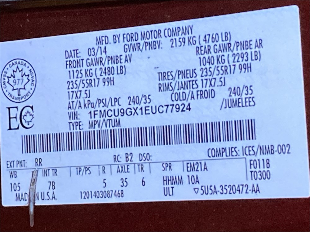 2014_FORD_ESCAPE _ VUS  4WD    ,Odomètre:187 317  km,Essence,Automatique,No série:1FMCU9GX1EUC77924,Masse (en kg):1611,Origine:Ville de Chambly V.CHAMBLY-14126,»» RÉPARATIONS  MAJEURES  À  FAIRE «« SYST. ÉLECTRIQUE,Véhicule remisé le  2026-01-20  ,TVQ calculable sur:4100