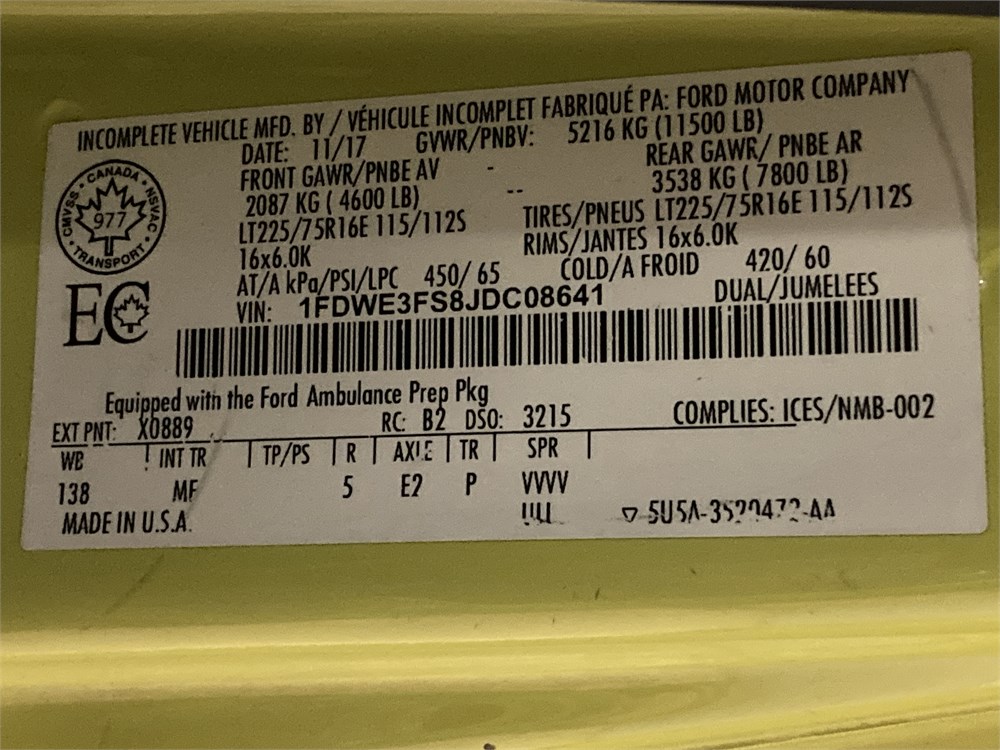 2018_FORD_E-350 _ AMBULANCE    6 ROUES, PNBV:5216KG  ,Odomètre:259 475  km,Essence,Automatique,No série:1FDWE3FS8JDC08641,Masse (en kg):4199,Origine:Corporation d'Urgences-Santé US-0046,»» AUCUNE  INFORMATION  SUR l'ÉTAT DU VÉHICULE «« ,Rancart, vérification méc. Obligatoire  Contrôle de vérification mécanique (CVM) requis :  ,TVQ calculable sur:Prix de vente