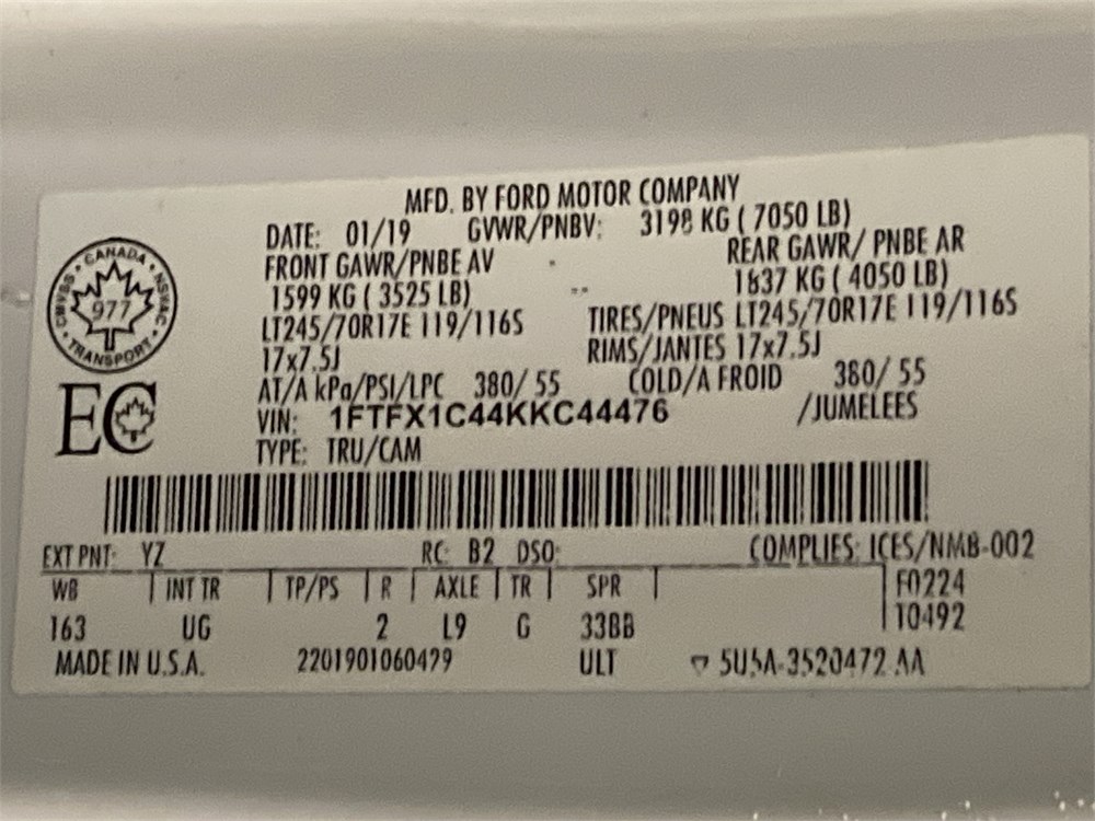 2019_FORD_F-150 XLT _ CAMIONNETTE      ,Odomètre:353 268  km,Essence,Automatique,No série:1FTFX1C44KKC44476,Masse (en kg):2089,Origine:Centre Gestion Equipement Roulant CGER-19-7095,»» RÉPARATIONS  MAJEURES  À  FAIRE «« à la transmission, ,Véhicule remisé le  2026-03-30  ,TVQ calculable sur:18600