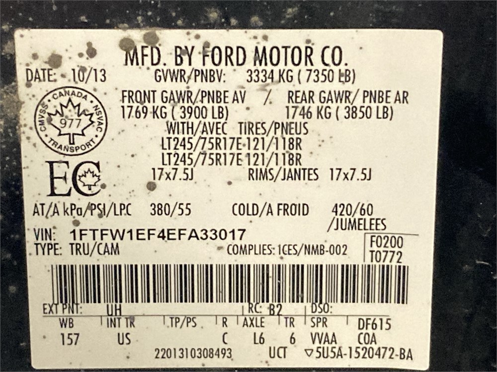 2014_FORD_F-150 XLT _ CAMIONNETTE  4 X 4    ,Odomètre:198 759  km,Essence,Automatique,No série:1FTFW1EF4EFA33017,Masse (en kg):2493,Origine:Centre Gestion Equipement Roulant CGER-14-70038,»» RÉPARATIONS  MAJEURES  À  FAIRE «« ,Véhicule remisé le  2026-03-30  ,TVQ calculable sur:9700