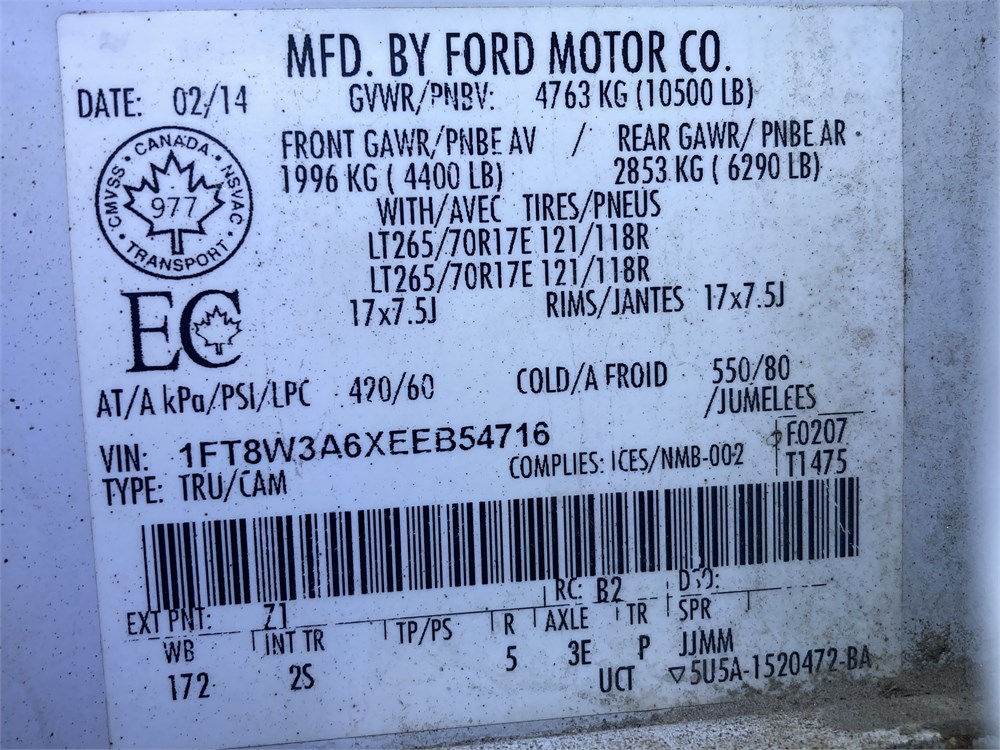 2014_FORD_F-350 _ CAMIONNETTE    PNBV: 4763KG  ,Odomètre:218 917  km,Essence,Automatique,No série:1FT8W3A6XEEB54716,Masse (en kg):2903,Origine:Centre Gestion Equipement Roulant CGER-14-7161,»» AUCUNE  INFORMATION  SUR l'ÉTAT DU VÉHICULE «« ATTENTION PEU/PAS DE FREIN,Véhicule remisé le  2026-03-30Contrôle de vérification mécanique (CVM) requis :  2025-03-01,Valeur HEBDOMAG:12600