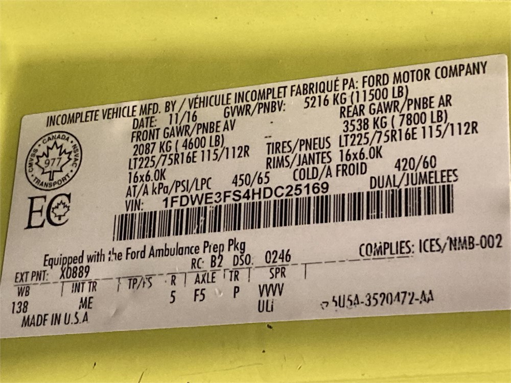 2017_FORD_E-350 _ AMBULANCE    6 ROUES, PNBV:5216KG  ,Odomètre:248 525  km,Essence,Automatique,No série:1FDWE3FS4HDC25169,Masse (en kg):4108,Origine:Corporation d'Urgences-Santé US-0146,»» AUCUNE  INFORMATION  SUR l'ÉTAT DU VÉHICULE «« ,Rancart, vérification méc. Obligatoire  Contrôle de vérification mécanique (CVM) requis :  ,TVQ calculable sur:Prix de vente