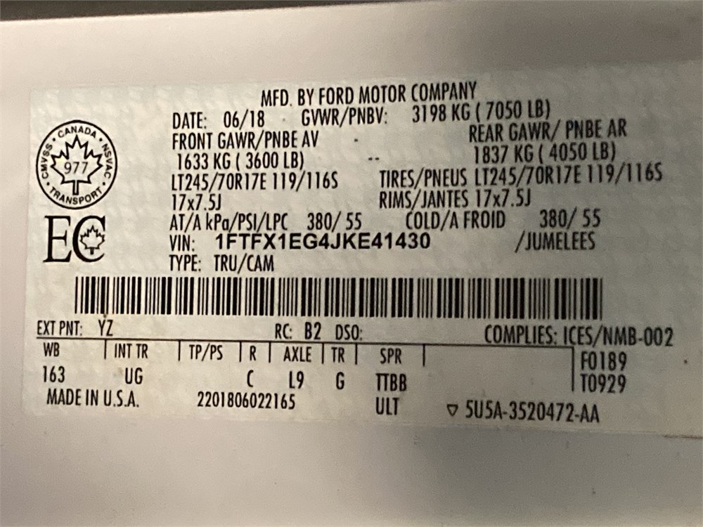 2018_FORD_F-150 XLT _ CAMIONNETTE 4 X 4 ,Odomètre:225 380 km,Essence,Automatique,No série:1FTFX1EG4JKE41430,Masse (en kg):2211,Origine:Centre Gestion Equipement Roulant CGER-18-7244,»» RÉPARATIONS MAJEURES À FAIRE «« ,Rancart, vérification méc. Obligatoire ,TVQ calculable sur:17700