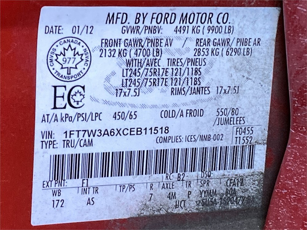 2012_FORD_F-350 XL _ CAMIONNETTE    BENNE  ,Odomètre:110 025  km,Essence,Automatique,No série:1FT7W3A6XCEB11518,Masse (en kg):2884,Origine:Ville de Montréal (Matériel roulant)V MTL-212-12133,»» RÉPARATIONS  MAJEURES  À  FAIRE «« PERFORÉ PAR LA ROUILLE,Rancart, vérification méc. Obligatoire    ,TVQ calculable sur:10200