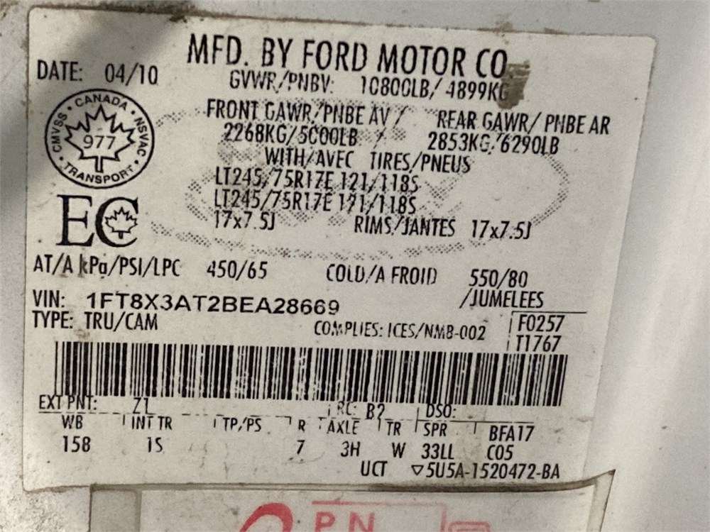 2011_FORD_F-350 XL _ CAMIONNETTE    PNBV:4899KG  ,Odomètre:209 579  km,Diesel,Automatique,No série:1FT8X3AT2BEA28669,Masse (en kg):3076,Origine:Ville de Longueuil V LONG-10008,»» RÉPARATIONS  MAJEURES  À  FAIRE «« au moteur, FONCTIONNE SUR 5 CYLINDRES,Rancart, vérification méc. Obligatoire  Contrôle de vérification mécanique (CVM) requis :  ,TVQ calculable sur:Prix de vente