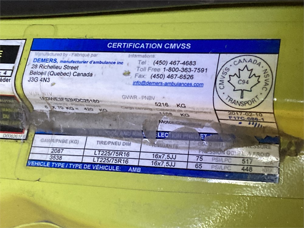 2017_FORD_E-350 _ AMBULANCE    6 ROUES, PNBV:5216KG  ,Odomètre:251 762  km,Essence,Automatique,No série:1FDWE3FS3HDC25180,Masse (en kg):4108,Origine:Corporation d'Urgences-Santé US-0173,»» RÉPARATIONS  MAJEURES  À  FAIRE «« au moteur, ,Rancart, vérification méc. Obligatoire  Contrôle de vérification mécanique (CVM) requis :  ,TVQ calculable sur:Prix de vente