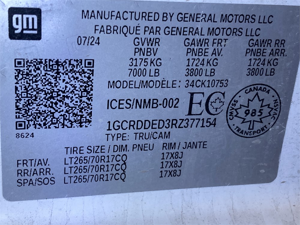 2024_CHEVROLET_SILVERADO 1500 _ CAMIONNETTE  4 X 4    ,Odomètre:86 468  km,Essence,Automatique,No série:1GCRDDED3RZ377154,Masse (en kg):2327,Origine:Centre Gestion Equipement Roulant CGER-24-70118,»» RÉPARATIONS  MAJEURES  À  FAIRE «« ESTIMATION PRÉLIMINAIRE: 45257$,Rancart, vérification méc. Obligatoire    ,TVQ calculable sur:45500