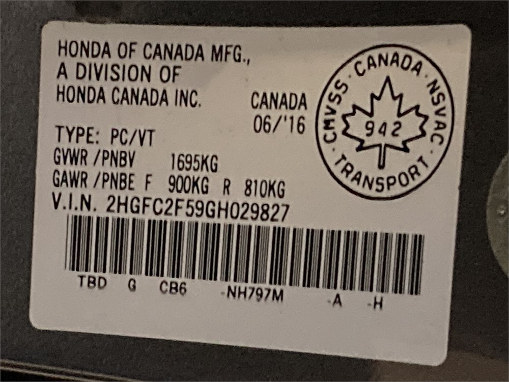 2016_HONDA_CIVIC _ AUTOMOBILE      ,Odomètre:191 405  km,Essence,Automatique,No série:2HGFC2F59GH029827,Masse (en kg):1224,Origine:Ville de Montréal (Matériel roulant)V MTL-144 160 328,»» AUCUNE  INFORMATION  SUR l'ÉTAT DU VÉHICULE «« ,Véhicule remisé le  2026-03-02  ,Valeur HEBDOMAG:8600