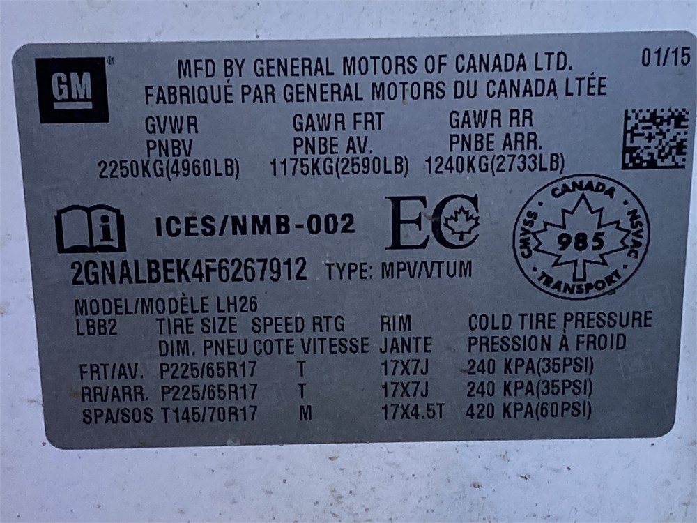 2015_CHEVROLET_EQUINOX LT _ VUS ,Odomètre:161 175 km,Essence,Automatique,No série:2GNALBEK4F6267912,Masse (en kg):1676,Origine:Centre Gestion Equipement Roulant CGER-15-7139,»» RÉPARATIONS MAJEURES À FAIRE «« PERFORÉ, SYST. ÉLECTRIQUE, DÉMARRAGE, SYST.CHARGE,Véhicule remisé le 2026-03-30 ,TVQ calculable sur:4300