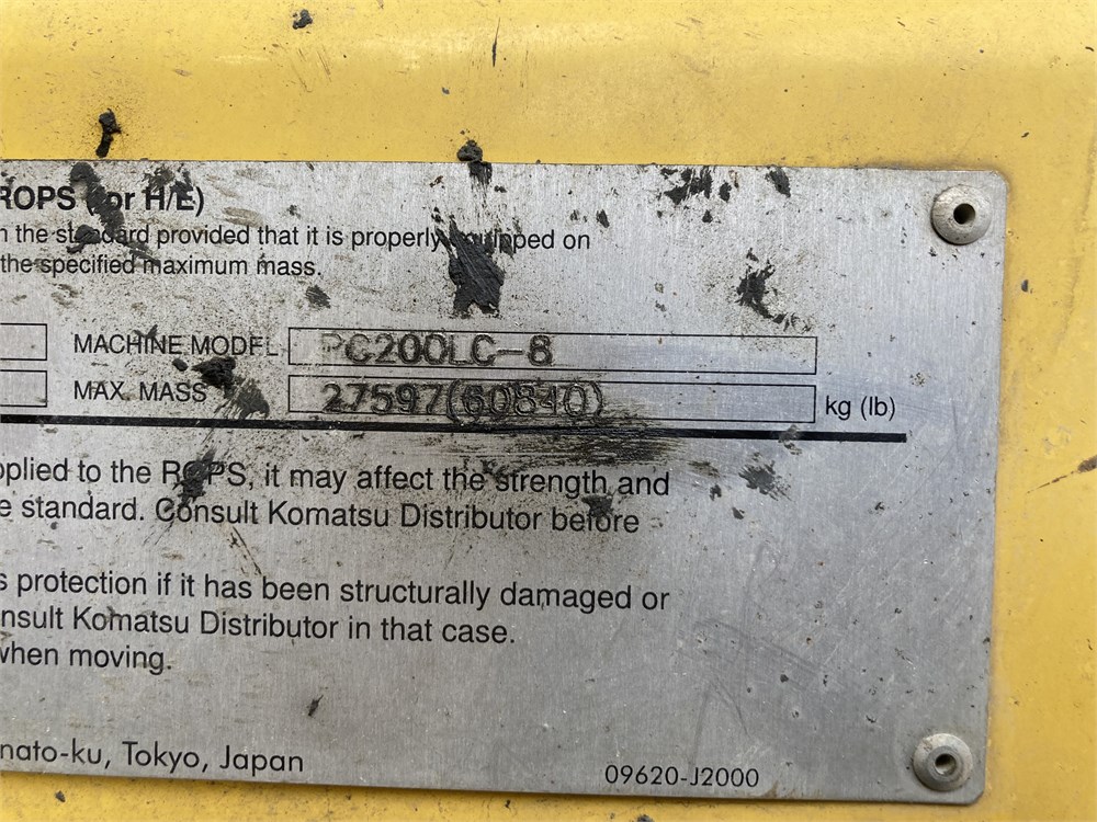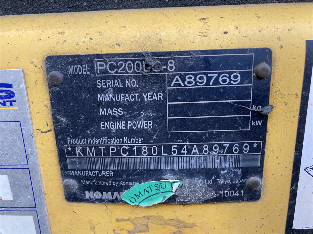 2011_KOMATSU_PC200LC8 _ PELLE HYDRAULIQUE    SUR CHENILLES  ,Odomètre:13 745  hres,Diesel,,No série:KMTPC180L54A89769,Masse (en kg):21480,Origine:Centre Gestion Equipement Roulant CGER-11-0700,»» AUCUNE  INFORMATION  SUR l'ÉTAT DU VÉHICULE ««