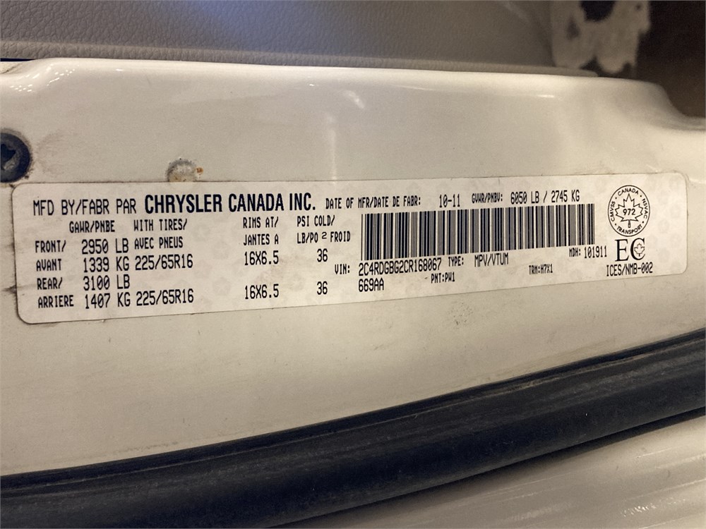 2012_DODGE_GRAND CARAVAN _ FOURGONNETTE ,Odomètre:171 326 km,Essence,Automatique,No série:2C4RDGBG2CR168067,Masse (en kg):1987,Origine:Centre Gestion Equipement Roulant CGER-12-0237,»» RÉPARATIONS MAJEURES À FAIRE «« SYST. ÉLECTRIQUE,Véhicule remisé le 2026-03-30 ,TVQ calculable sur:2600