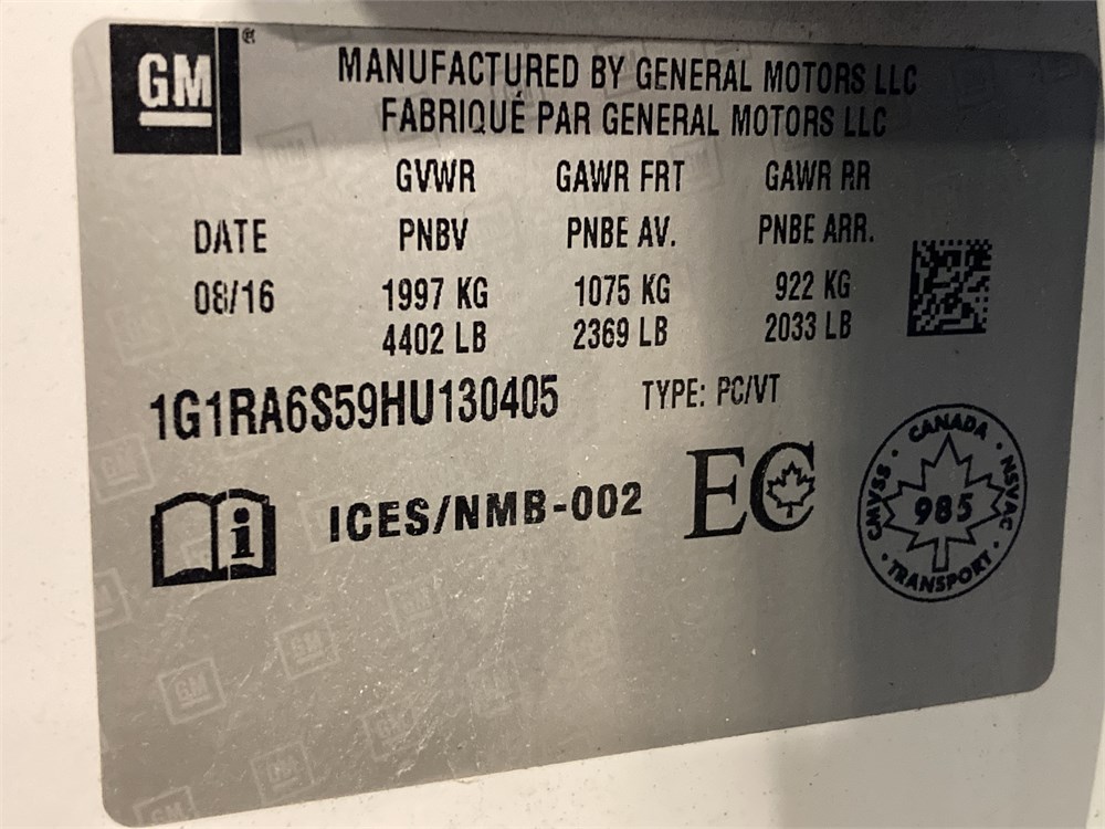 2017_CHEVROLET_VOLT _ AUTOMOBILE    HYBRIDE  ,Odomètre:166 666  km,Hybride,Automatique,No série:1G1RA6S59HU130405,Masse (en kg):1578,Origine:Centre Gestion Equipement Roulant CGER-17-0025,»» AUCUNE  INFORMATION  SUR l'ÉTAT DU VÉHICULE «« ,Véhicule remisé le  2026-03-30  ,Valeur HEBDOMAG:9600