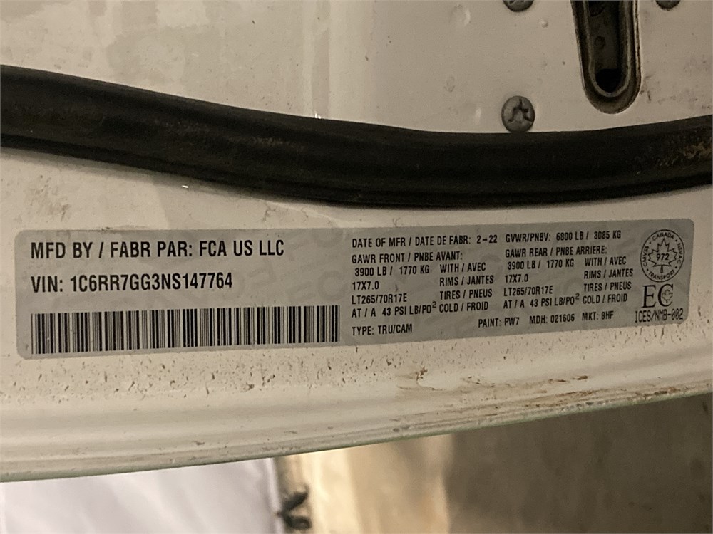 2022_DODGE_RAM 1500 _ CAMIONNETTE  4 X 4    ,Odomètre:211 521  km,Essence,Automatique,No série:1C6RR7GG3NS147764,Masse (en kg):2245,Origine:Centre Gestion Equipement Roulant CGER-22-7097,»» RÉPARATIONS  MAJEURES  À  FAIRE «« ESTIMÉ PRÉLIMINAIRE:26414$,Rancart, vérification méc. Obligatoire    ,TVQ calculable sur:28400