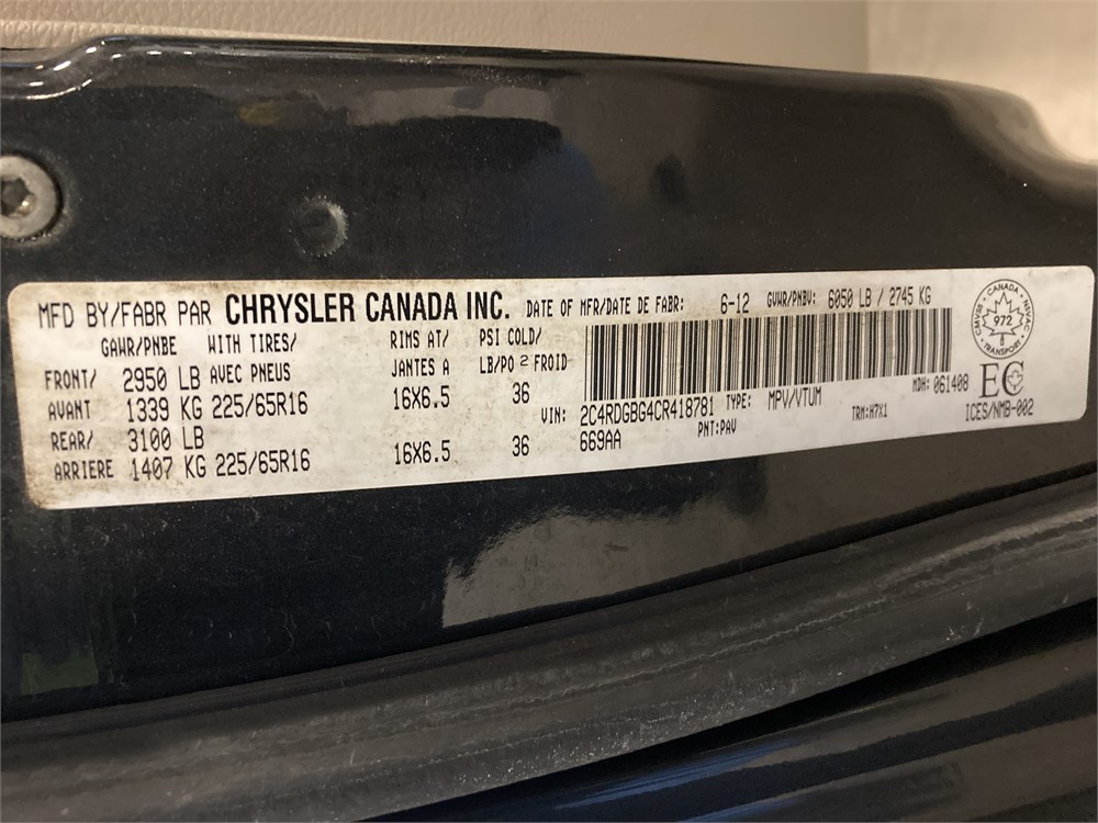 2012_DODGE_GRAND CARAVAN _ FOURGONNETTE      ,Odomètre:110 273  km,Essence,Automatique,No série:2C4RDGBG4CR418781,Masse (en kg):1987,Origine:Revenu Québec: Direction Génerale des Enquêtes TABACRQ-ENQ-T-1435,»» AUCUNE  INFORMATION  SUR l'ÉTAT DU VÉHICULE «« ,Rancart, vérification méc. Obligatoire    ,Valeur HEBDOMAG:3000