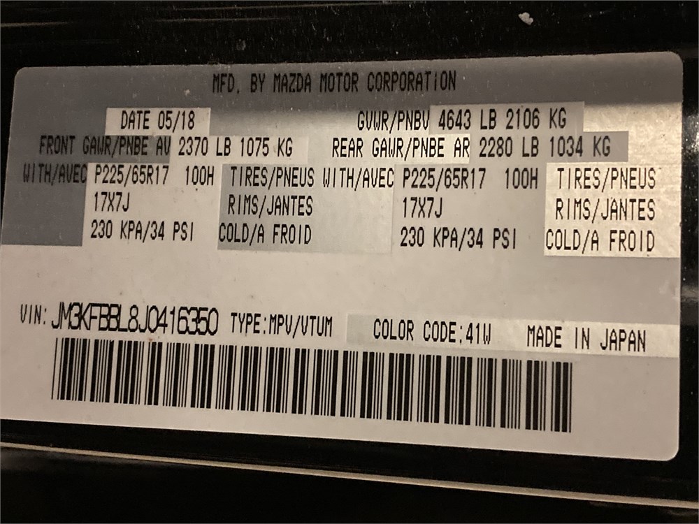 2018_MAZDA_CX-5 _ VUS  AWD    ,Odomètre:168 144  km,Essence,Automatique,No série:JM3KFBBL8J0416350,Masse (en kg):1,Origine:SAAQ-Division Gestions des Sanctions SAAQ-DGS-44796211,»» AUCUNE  INFORMATION  SUR l'ÉTAT DU VÉHICULE «« ,Véhicule remisé le  2025-05-30  ,TVQ calculable sur:12300