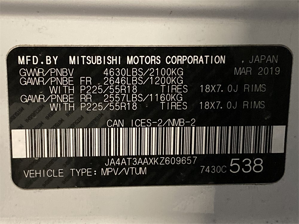 2019_MITSUBISHI_ECLIPSE CROSS _ VUS  AWD    ,Odomètre:208 162  km,Essence,Automatique,No série:JA4AT3AAXKZ609657,Masse (en kg):1,Origine:SAAQ-Division Gestions des Sanctions SAAQ-DGS-44781317,»» AUCUNE  INFORMATION  SUR l'ÉTAT DU VÉHICULE «« ,Vérification mécanique obligatoire    ,TVQ calculable sur:12800