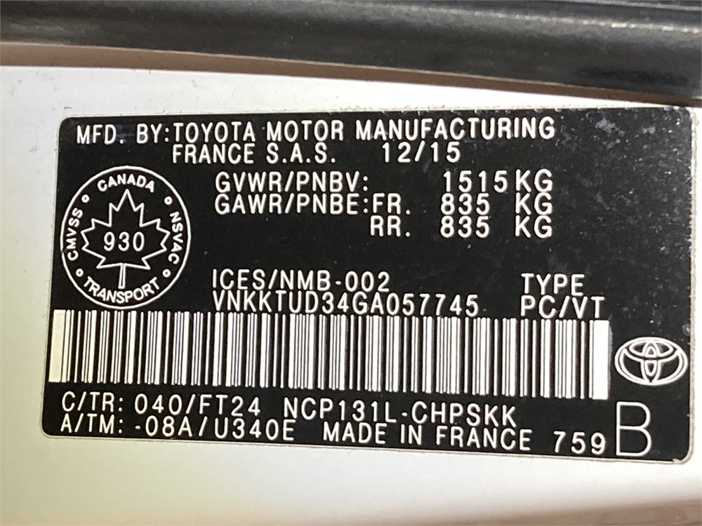 2016_TOYOTA_YARIS SE _ AUTOMOBILE      ,Odomètre:32 603  km,Essence,Automatique,No série:VNKKTUD34GA057745,Masse (en kg):1,Origine:SAAQ-Division Gestions des Sanctions SAAQ-DGS-44053703,»» AUCUNE  INFORMATION  SUR l'ÉTAT DU VÉHICULE «« ,Véhicule remisé le  2025-08-30  ,TVQ calculable sur:7500