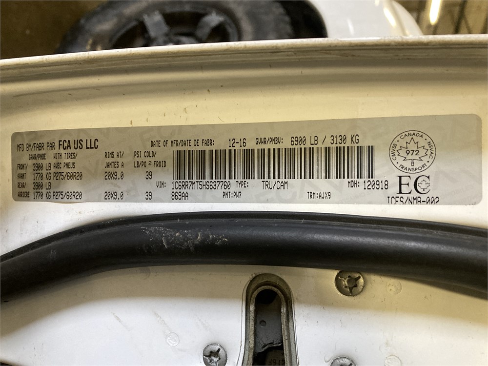2017_RAM_1500 _ CAMIONNETTE  4 X 4    ,Odomètre:188 714  km,Essence,Automatique,No série:1C6RR7MT5HS637760,Masse (en kg):1,Origine:SAAQ-Division Gestions des Sanctions SAAQ-DGS-44809554,»» AUCUNE  INFORMATION  SUR l'ÉTAT DU VÉHICULE «« ,Vérification mécanique obligatoire    ,Valeur HEBDOMAG:19000