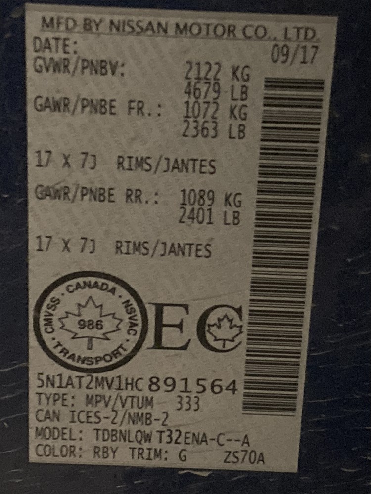 2017_NISSAN_ROGUE SV _ VUS  AWD    ,Odomètre:162 834  km,Essence,Automatique,No série:5N1AT2MV1HC891564,Masse (en kg):1,Origine:SAAQ-Division Gestions des Sanctions SAAQ-DGS-44523421,»» AUCUNE  INFORMATION  SUR l'ÉTAT DU VÉHICULE «« ,Vérification mécanique obligatoire    ,Valeur HEBDOMAG:8800