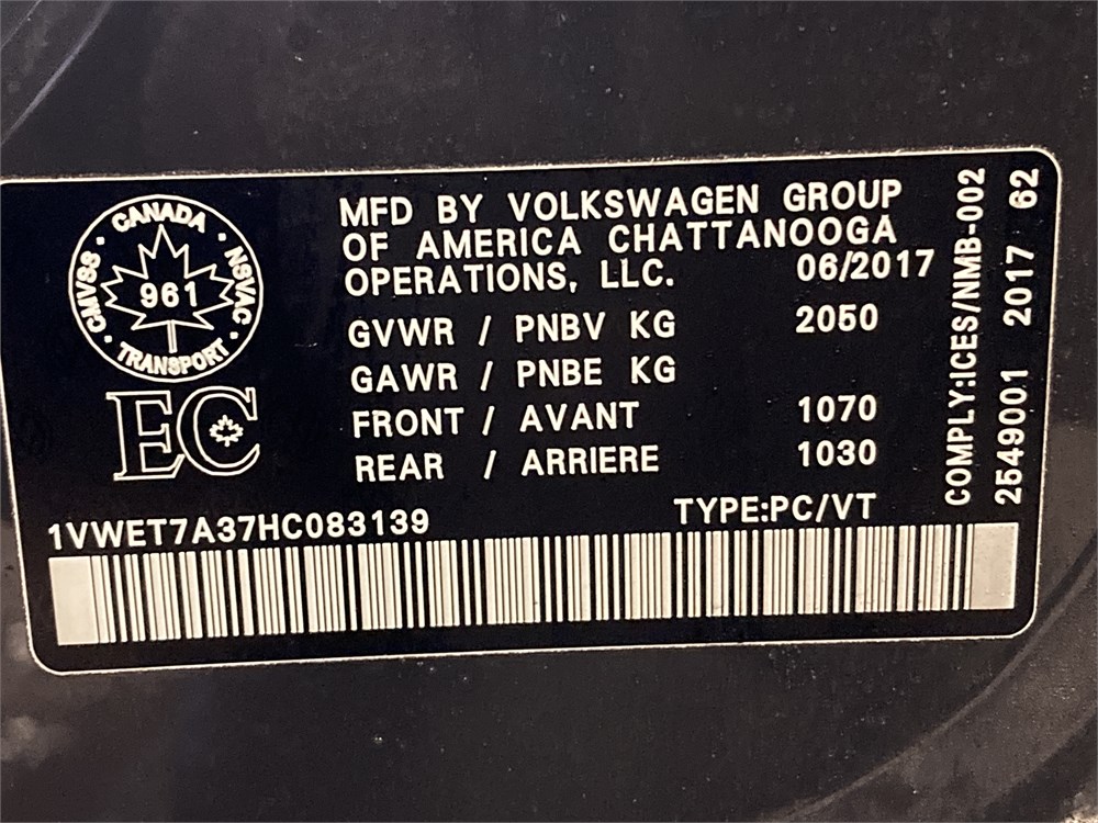 2017_VOLKSWAGEN_PASSAT _ AUTOMOBILE      ,Odomètre:31 717  km,Essence,Automatique,No série:1VWET7A37HC083139,Masse (en kg):1,Origine:SAAQ-Division Gestions des SanctionsSAAQ-DGS-43739035,»» AUCUNE  INFORMATION  SUR l'ÉTAT DU VÉHICULE «« ,Vérification mécanique obligatoire    ,Valeur HEBDOMAG:10800