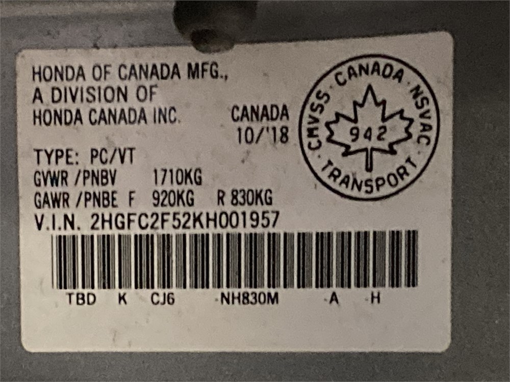 2019_HONDA_CIVIC _ AUTOMOBILE      ,Odomètre:82 713  km,Essence,Automatique,No série:2HGFC2F52KH001957,Masse (en kg):1,Origine:SAAQ-Division Gestions des Sanctions SAAQ-DGS-43757637,»» AUCUNE  INFORMATION  SUR l'ÉTAT DU VÉHICULE «« ,Véhicule remisé le  2025-08-30  ,Valeur HEBDOMAG:14300